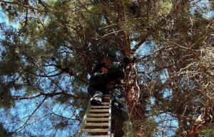 Manisa’nın Salihli ilçesinde çam ağacına tırmanıp mahsur kalan kedi, itfaiye ekiplerinin müdahalesiyle güvenli bir şekilde kurtarılarak doğal ortamına bırakıldı. Kedinin boynundaki tasmanın ağaç dalına takılması nedeniyle yaklaşık 2 gün boyunca mahsur kaldığı öğrenildi.