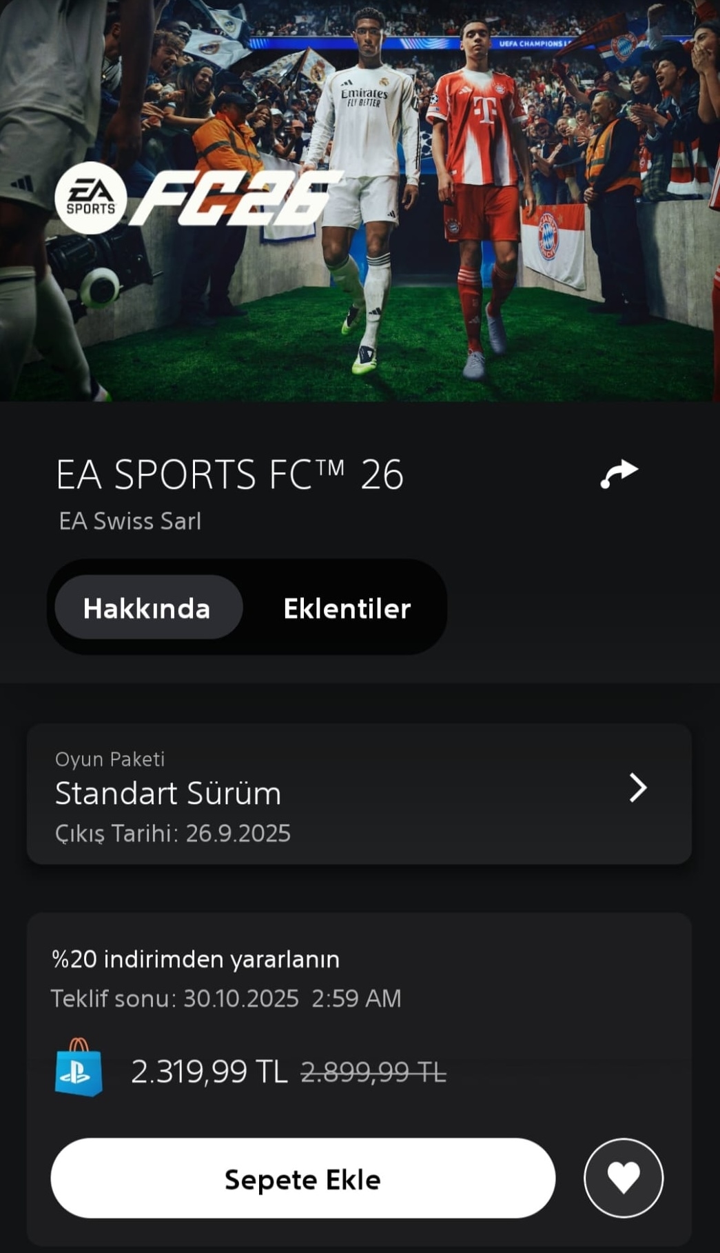 FC 26, PlayStation’da 2.319 TL’ye düştü