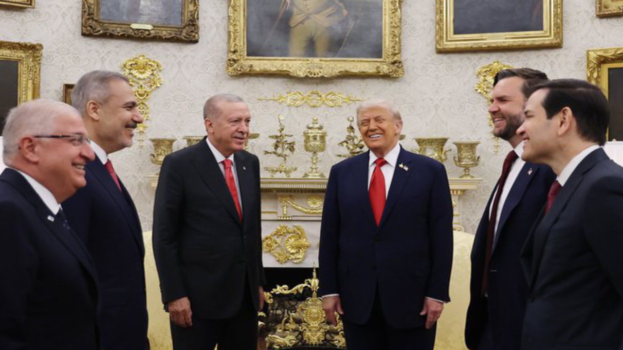 Donald Trump toplantı öncesi kameralar kayıt alırken, yanındaki liderlere bakarak, “Bunu önemli bir toplantıya dönüştüreceğiz değil mi?” dedi. Görüşmede Erdoğan’a, Dışişleri Bakanı Hakan Fidan, Milli Savunma Bakanı Yaşar Güler, Enerji ve Tabii Kaynaklar Bakanı Alparslan Bayraktar, MİT Başkanı İbrahim Kalın, Cumhurbaşkanlığı İletişim Başkanı Burhanettin Duran ile Cumhurbaşkanı Dış Politika ve Güvenlik Başdanışmanı Akif Çağatay Kılıç eşlik etti.